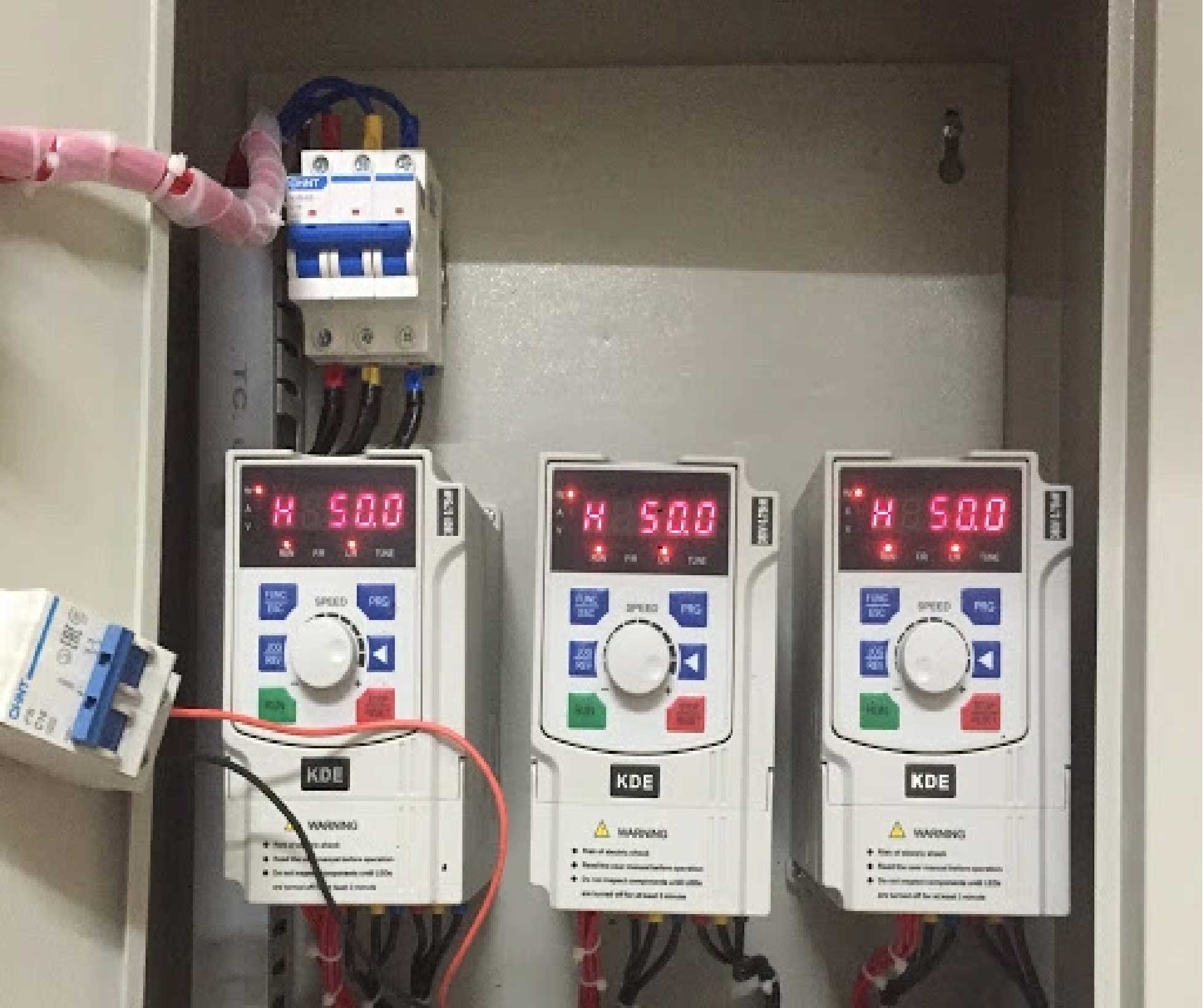 - Đội ngũ kỹ thuật của Nihaco đưa ra giải pháp thay toàn bộ các bộ điều khiển cũ bằng biến tần. Sử dụng biến tần KDE.
