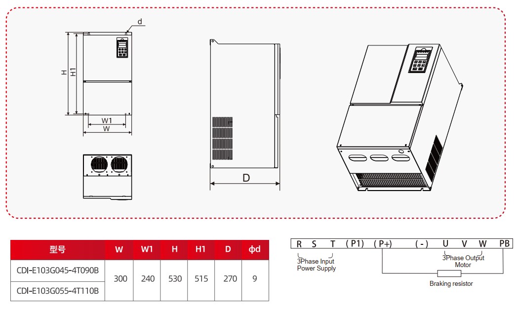 CDI-E103G055-4T110B là model thuộc dòng biến tần Delixi CDI-E103, là dòng sản phẩm chuyên dụng để điều khiển hệ thống bơm thủy lực, thích hợp cho các máy ép nhựa, máy đúc áp lực, máy dập và nhiều hệ thống công nghiệp cần điều khiển áp suất – lưu lượng chính xác. Với thiết kế thông minh, tiết kiệm năng lượng và độ ổn định cao, E103 trở thành lựa chọn tối ưu cho các doanh nghiệp sản xuất.