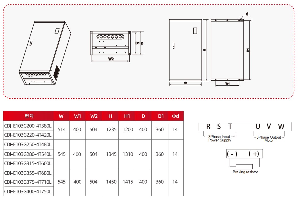 Thông số kỹ thuật của biến tần Delixi CDI-E103G160-4T300