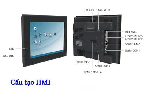 Dựa theo các cách phân loại HMI phía trên, tựa chung chúng ta có thể thấy được HMI bao gồm 3 phần chính: