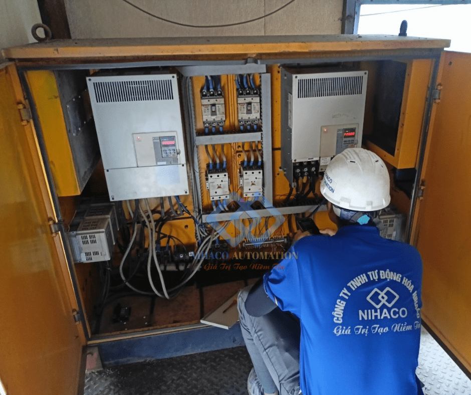 Nihaco Automation vừa hoàn thành dự án tại Quảng Yên, tỉnh Quảng Ninh, liên quan đến việc lắp đặt và sửa chữa biến tần cho cẩu 50 tấn. Mục tiêu của dự án là nâng cao hiệu suất và hiệu suất của cần cẩu bằng cách triển khai hệ thống biến tần. Bằng cách sử dụng công nghệ này, giờ đây cần cẩu có thể điều chỉnh tốc độ và mô-men xoắn tùy theo khối lượng công việc, giúp cải thiện năng suất và giảm mức tiêu thụ năng lượng. Dự án bắt đầu bằng việc đánh giá kỹ lưỡng hệ thống cầu trục hiện có để xác định bất kỳ vấn đề hoặc bộ phận nào cần sửa chữa hoặc thay thế.