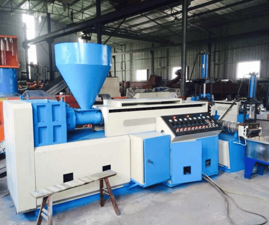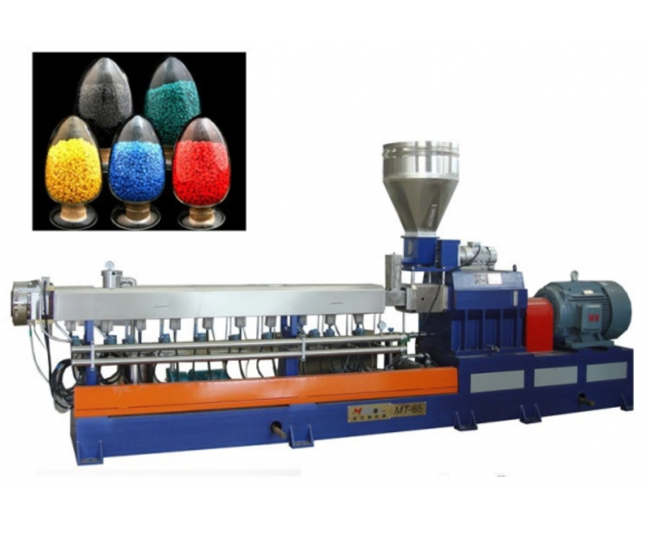 Nguyên liệu thô được đưa vào phễu của máy đùn, thông qua trục vít và nhiệt độ bộ nòng trục để nhựa chuyển hoá thành nguyên liệu. Trong quá trình đùn của nguyên liệu thô, nguyên liệu thô dần dần sẽ được nóng chảy nhờ vào sự tăng dần nhiệt độ của tấm gia nhiệt bọc bên ngoài nòng trục vít. Sau đó nguyên liệu được đùn qua khuôn để hình thành đường kính của hạt nhựa.
