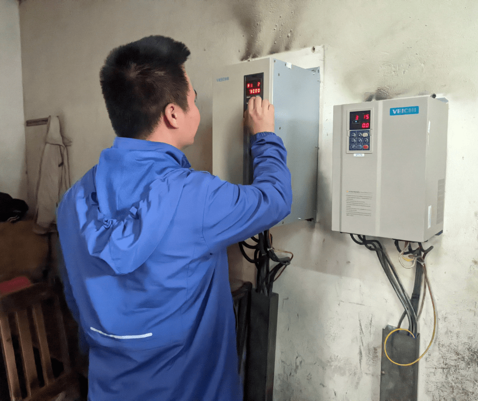 Nhân viên kỹ thuật Nihaco lắp đặt biến tần Veichi
